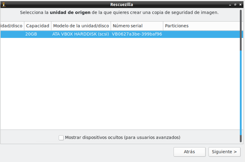 Ara seleccionem una partició que hem creat anteriorment que és on realitzarem la nostra còpia de seguretat.