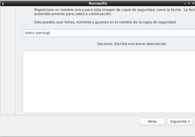 El nom que hem afegit a la nostra còpia de seguretat es indicc-backup ja que volem que s’identifiqui el nostre nom amb la còpia de seguretat per assegurar que és la nostra.