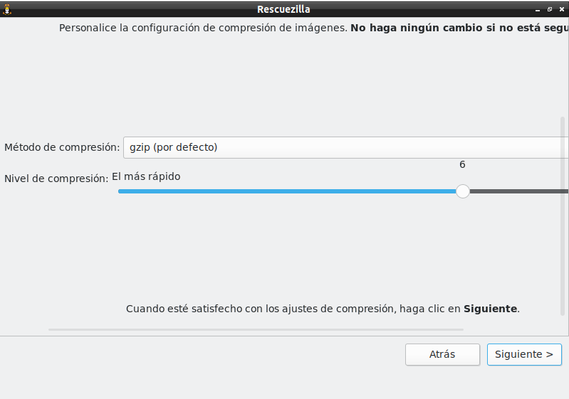 Ara, ens demana quin mètode volem per comprimir l’arxiu i nosaltres afegim el que ve per defecte que és el gzip amb el mètode més ràpid possible.