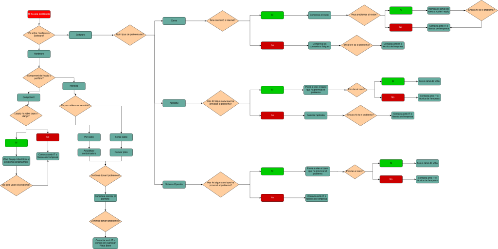 Per resoldre les incidències existents a la nostra empresa, a més de la creació d’un sistema per notificar dites incidències, hem creat un diagrama de flux per a quan hi hagi incidències, es pugui saber com actuar.
