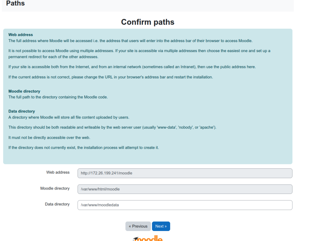 Despres posem de la ip/moodle i ja comensara la part de instalació del moodle.