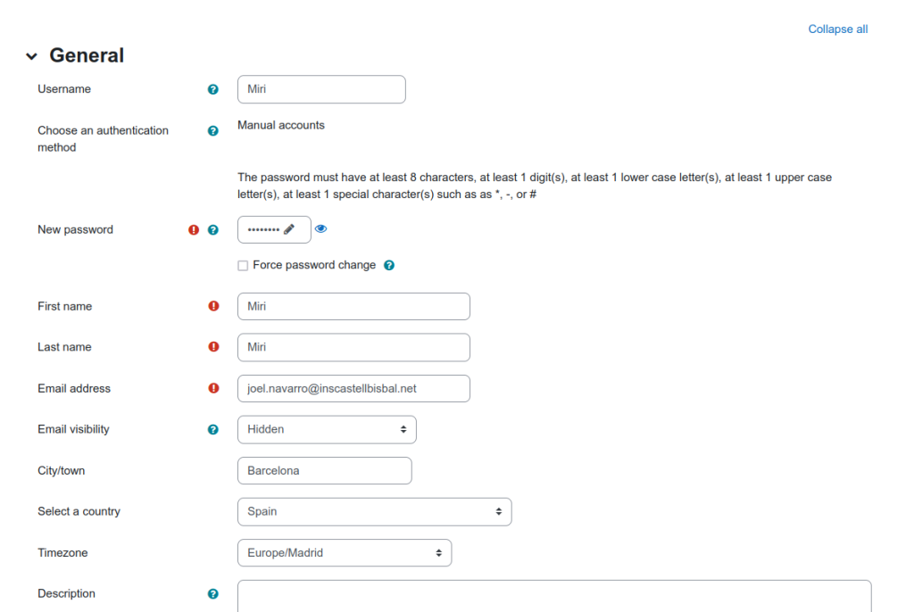 Ara posarem les dades que volem ja que sera el nom que surtira a la pagina web en el nostre cas es “Miri” ja que es el nom de la nostra empresa