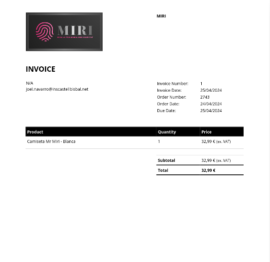 Aqui com podem veure es la nostre factura descarregada a PDF ,es un exemple , es a dir hem escollit un producte ,li hem donat a solicitar ordre , y li hem fet una factura del producte a el cleint .