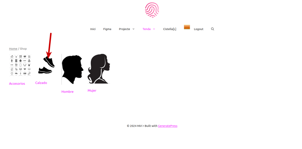 Un cop hi som dintre de la tenda podem visualitzar les nostres coleccions d’ home , dona … Per exemple entrem dintre del calçat .