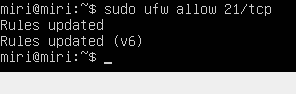 Per finalitzar fem un ufw allow 21/tcp