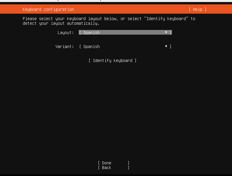 Aqui tornem a seleccionar un idioma pero en aquest cas sera el del teclat.